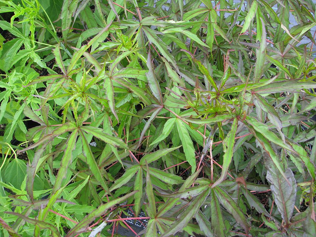 Hibiscus coccineus, commonly known as the Scarlet Rosemallow or Texas Star, is a striking plant characterized by its large, bright red, star-shaped flowers and distinct, palmate leaves. It is native to swampy areas in the southeastern United States, making it well-suited for wet soil conditions.